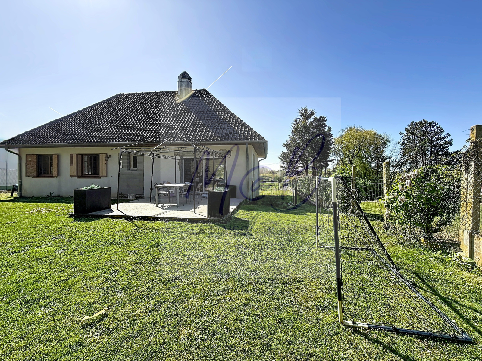 Un beau jardin de 935 m2 entièrement clos, avec une magnifique vue dégagée entoure la maison ce qui assure de pouvoir profiter du soleil à toutes heures de la journée, grâce également à ses 2 terrasses devant et derrière la maison.