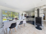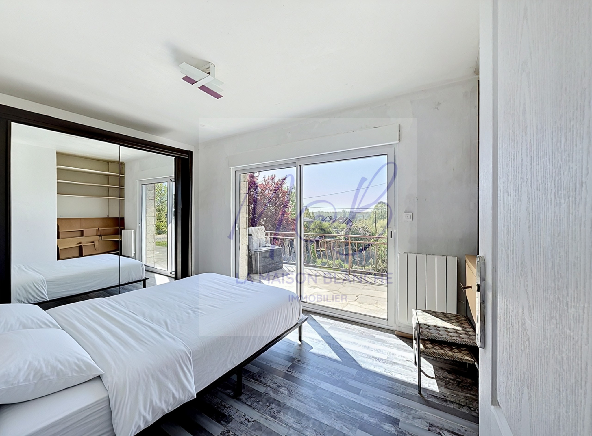 La maison se compose d'une vaste entrée, une cuisine aménagée ouverte sur une grande pièce de vie baignée de lumière grâce à ses deux grandes baies vitrées. Le salon est orienté plein sud avec une belle vue dégagée sur la campagne environnante. Un couloir dessert 3 chambres dont une avec baie vitrée donnant sur la terrasse sud, une salle de bain et un wc séparé. Toutes les pièces de l'habitation se trouvent au même niveau, pas d'étage à monter pour les chambres.